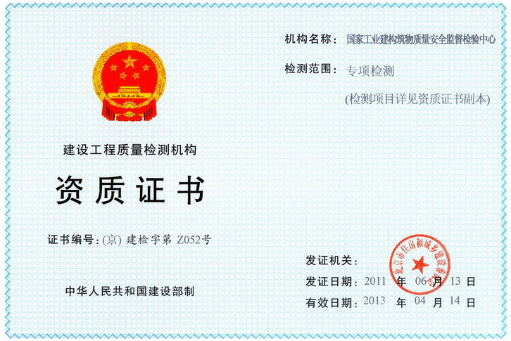 國家圖書館二期工程(鋼材、鋼結構材料、鋼筋混凝土、水泥檢測; 建筑材料化學分析檢