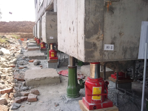 頂升糾偏主要針對鋼結(jié)構(gòu)廠房傾斜糾偏,對部分沉降較大的柱子進(jìn)行頂升抬高,對傾斜度大柱子進(jìn)行單側(cè)頂起,再做基礎(chǔ)處理,達(dá)到廠房回傾,柱子糾偏的目的。